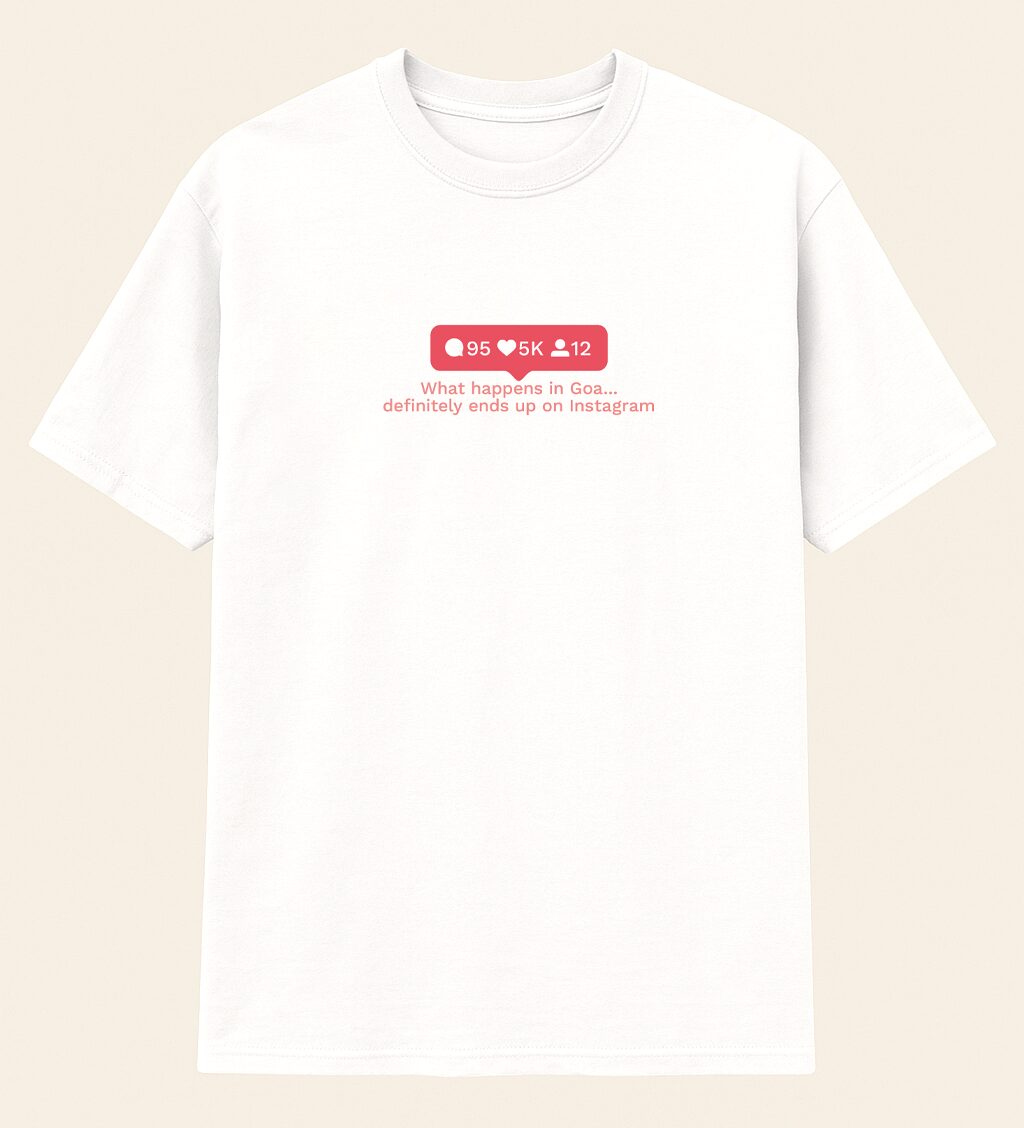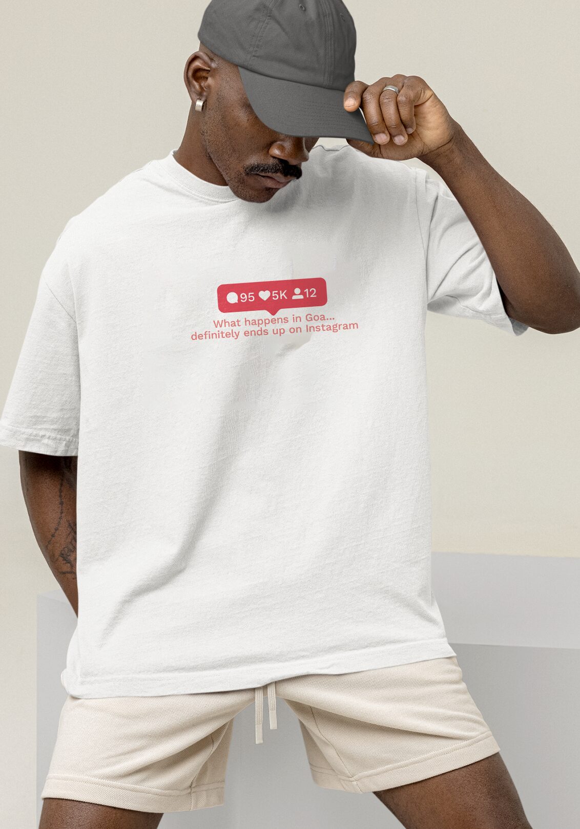 This Oversized t-shirt captures the modern Goa mantra with a bold Instagram-inspired graphic and the witty truth: “What happens in Goa… definitely ends up on Instagram.”